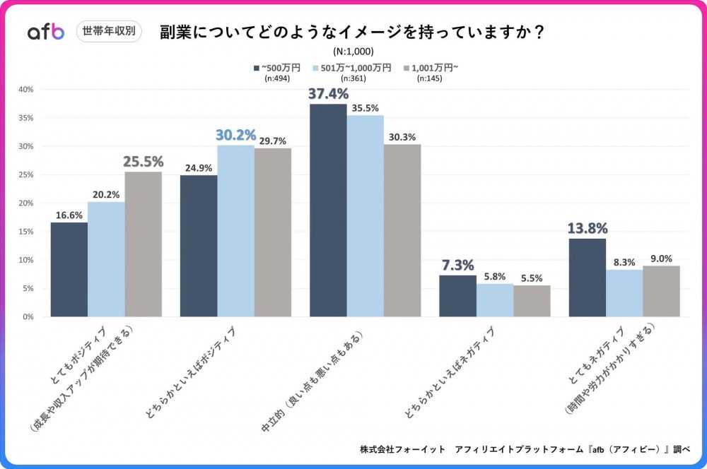 副業に関するイメージ調査を実施!年収が高い人ほど副業にポジティブなことが明らかに