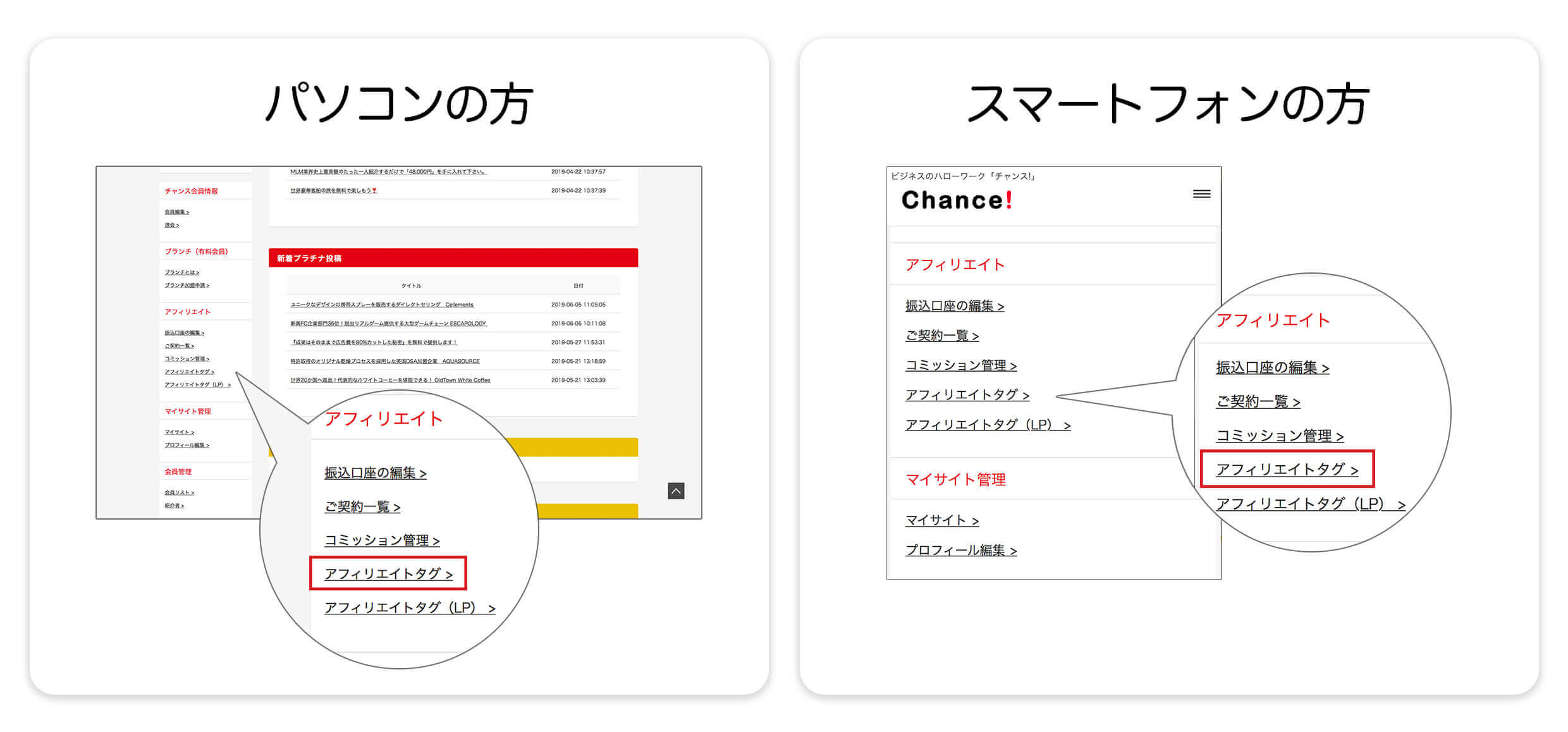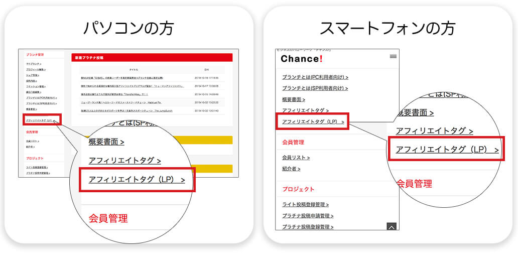 LPは会員マイページ内のリクルートタグ取得②内に設置されています。