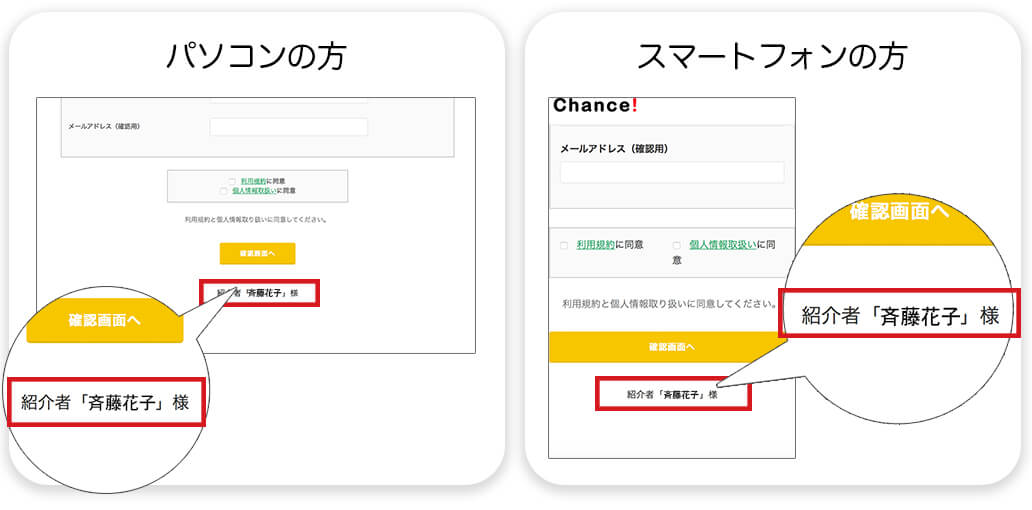 表示されていない場合、会員の紐付けはされません。(あなたの紹介で登録されません)