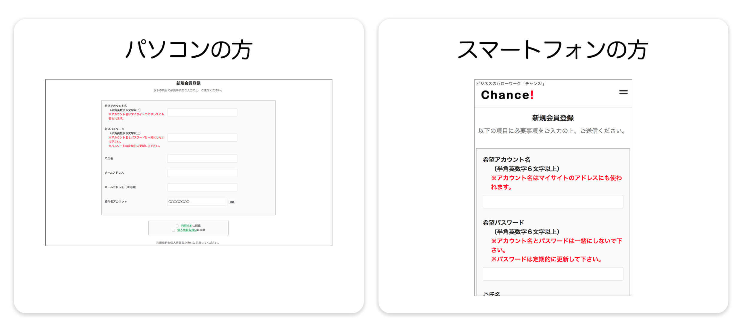 4.ランディングページを見た方がランディングページから新規登録画面に入り、新規会員登録をします。