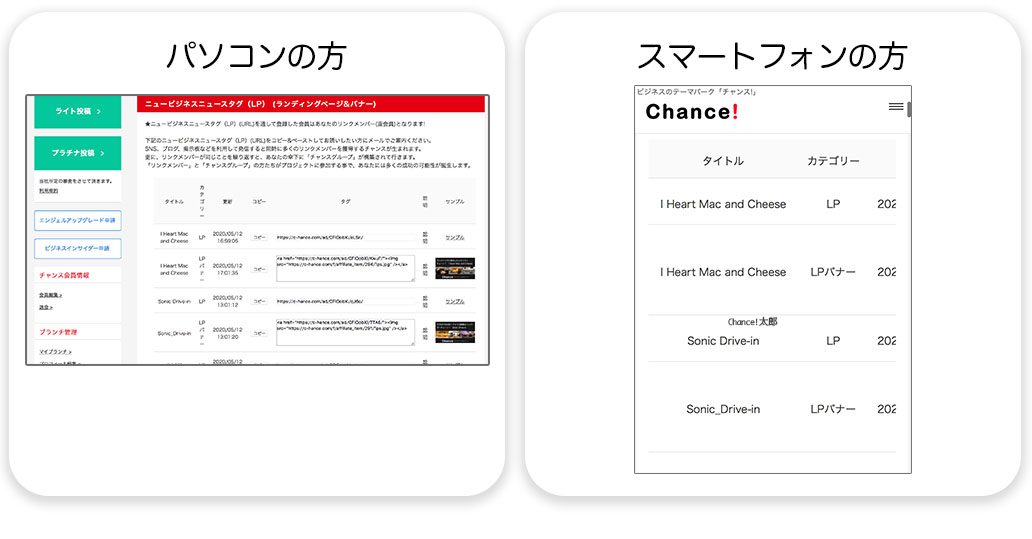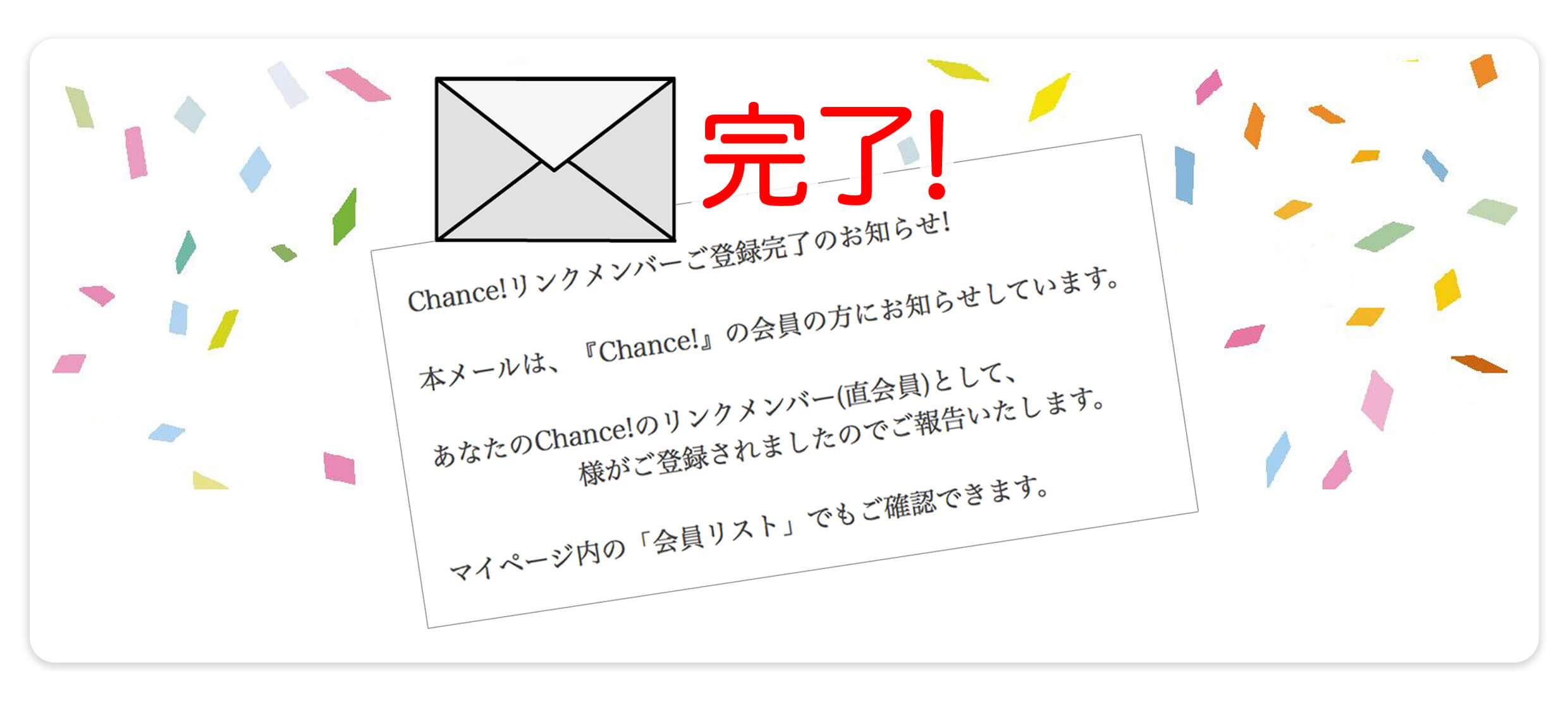 チャンスグループとは、貴方が外部からマイページ内のリクルートタグなどを使ってChance!にお誘いした直会員(リンクメンバー)から始まるグループです。