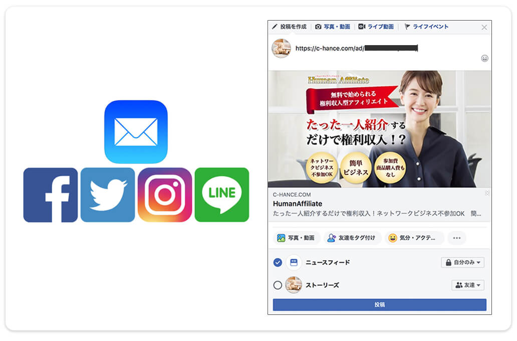 3.メールやブログなどにペーストして、紹介したい方にアフィリエイトタグを送ります。