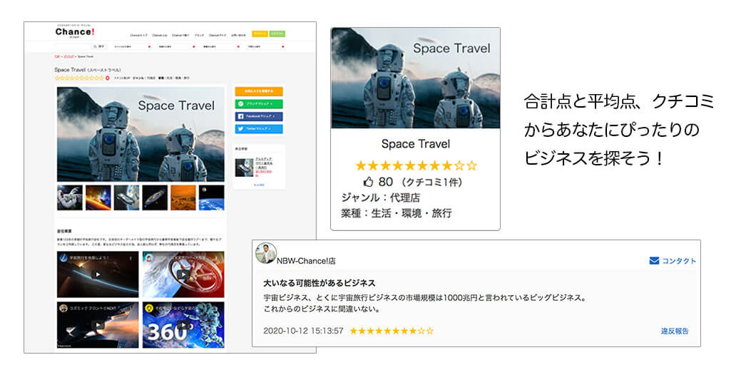 会員はクチコミ(レビュー記事を投稿)をするだけでビジネスパートナーや商品ユーザーを獲得できます。
