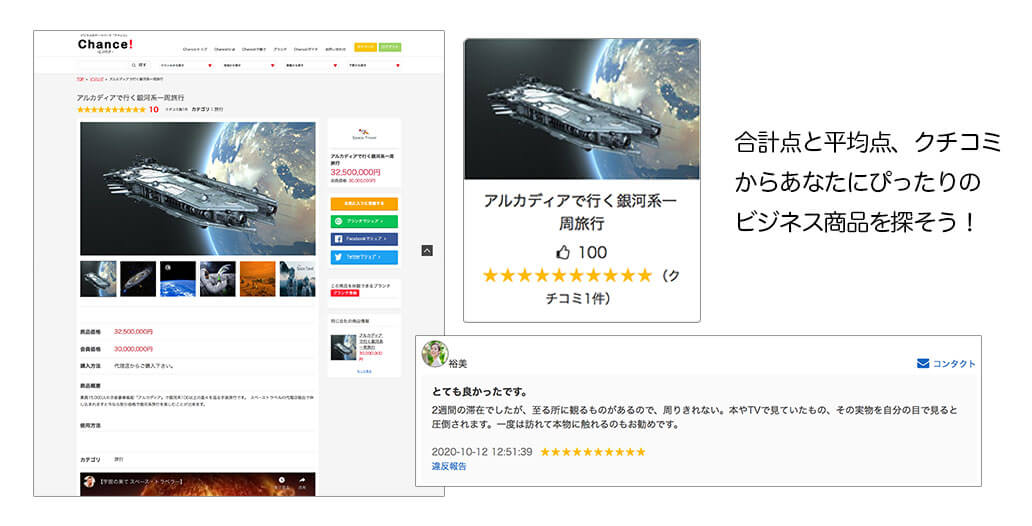 ビジネスや商品を体験者のクチコミ(レビュー)で探せるクチコミ型ビジネスマッチングサイトを目指して誕生しました。