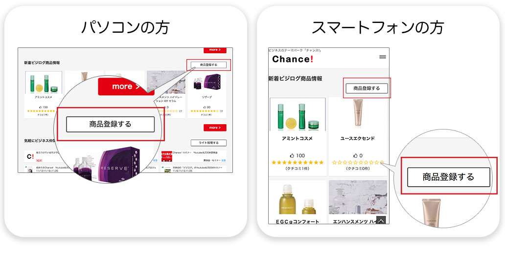 ネットワークビジネスやフランチャイズビジネスを探している人は商品からビジネスを探すことができます。