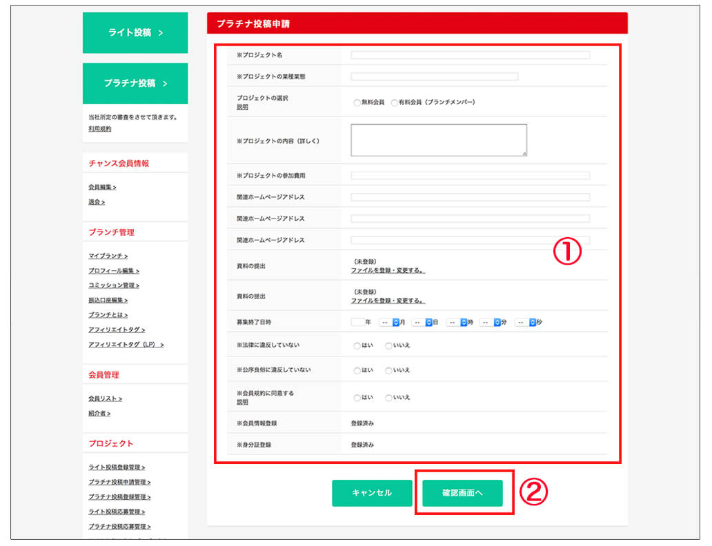 プラチナ投稿申請をする