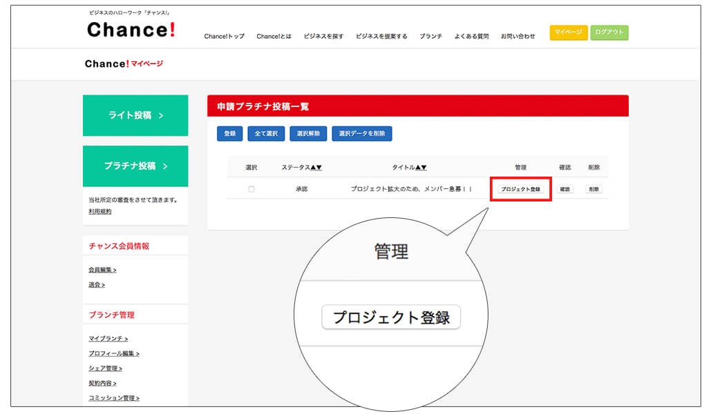 また、オフィシャルプロジェクトに参加した方は、Chance!のブランチ会員の登録料(30,000円~)が免除されます。