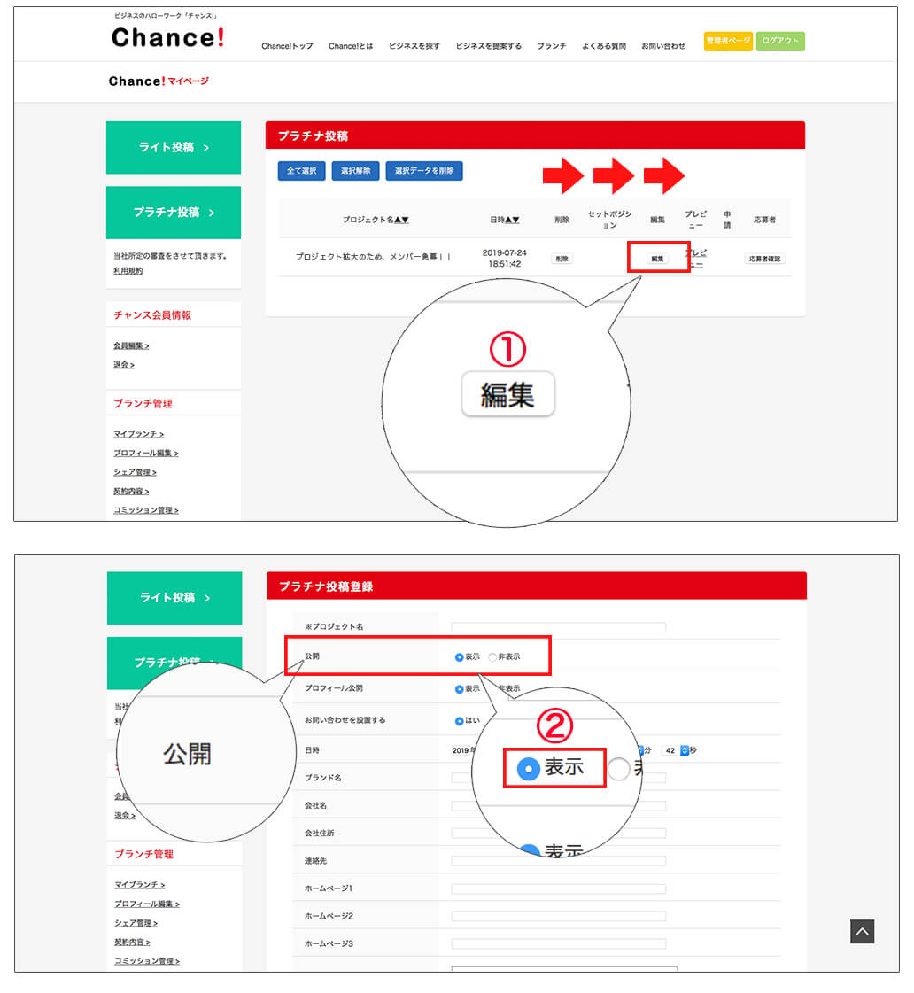 プラチナ投稿を編集するには