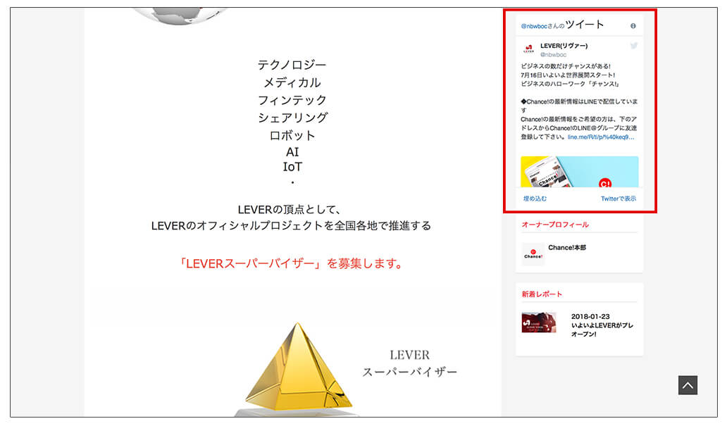なお、この方法はマイブランチやマイサイトにTwitter公開ページを埋め込む時にも使うことができます。