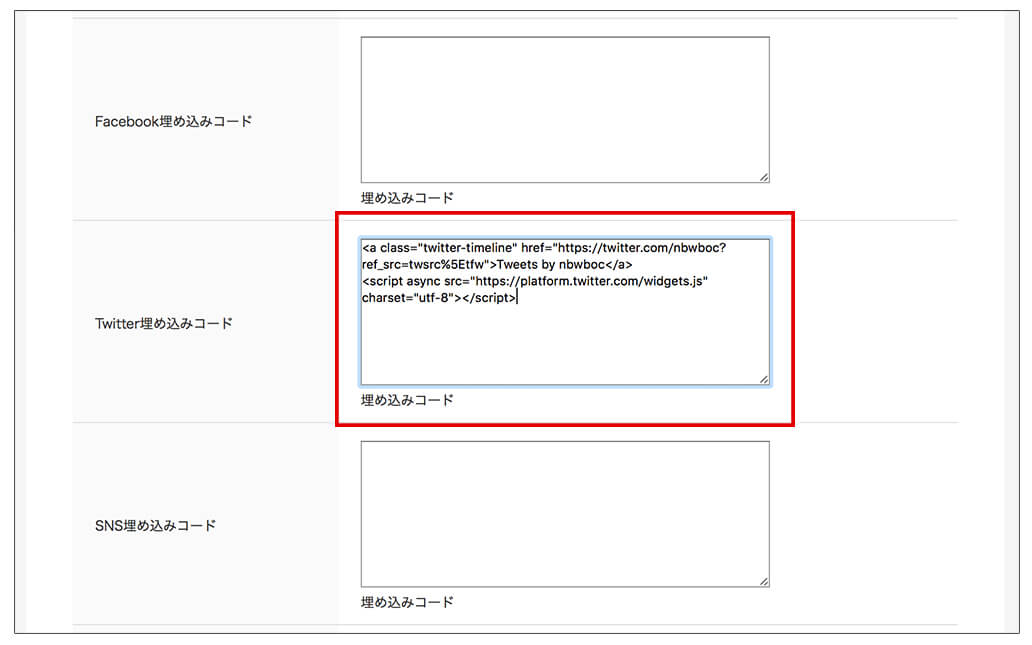 4.Twitter埋め込みコードを入力するフォームに先ほどコピーした埋め込みコードをペーストし、確認画面へ進みます。