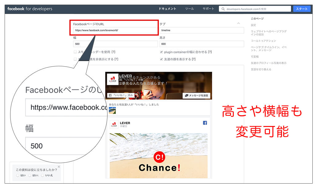 なお、この方法はマイブランチやマイサイトにfacebook公開ページを埋め込む時にも使うことができます。