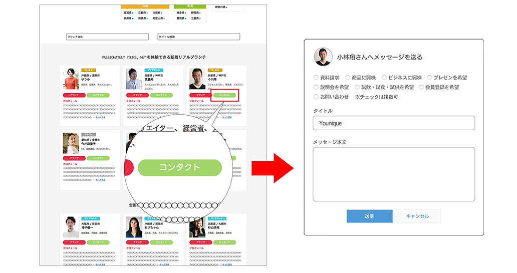 2.リアルブランチ一覧からコンタクトしたいブランチを選び、コンタクトをクリックしましょう。