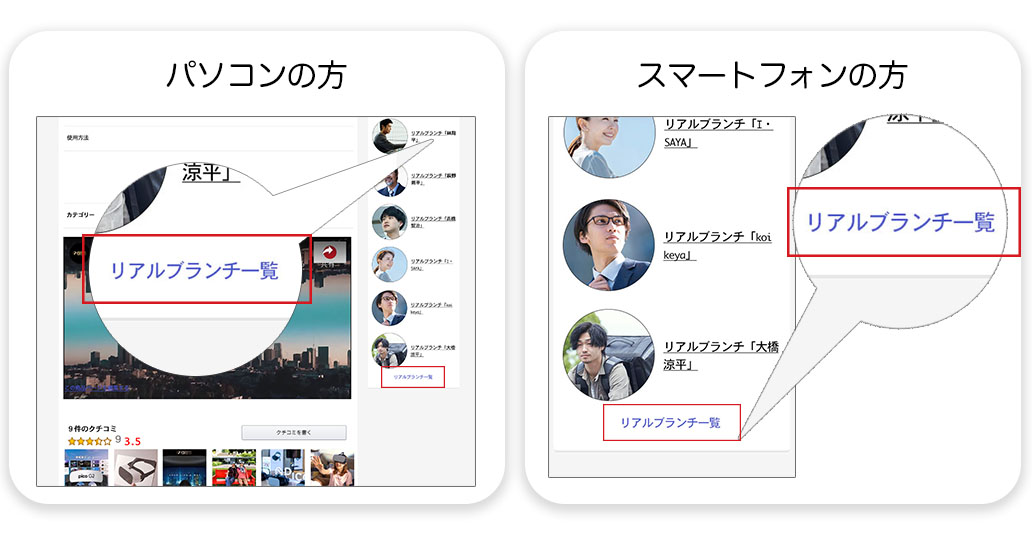 1.まず、商品ページのこの商品を体験できるブランチ一覧下部にある「リアルブランチ一覧」をクリックします。
