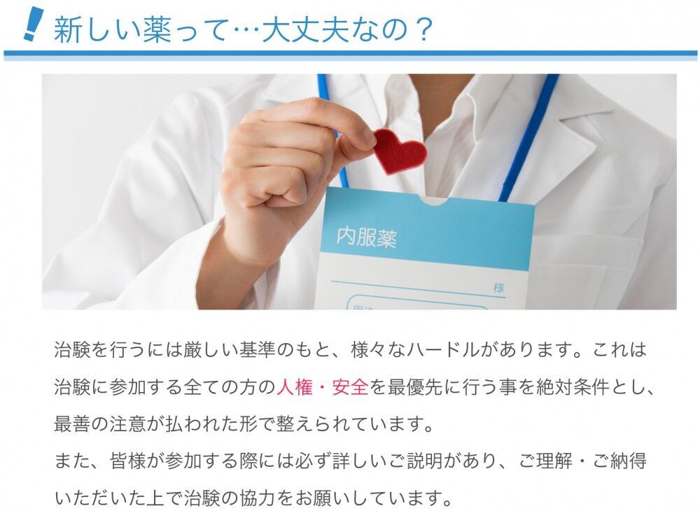 つい懸念されがちな治験ですが、弊社がご紹介している案件はどれも