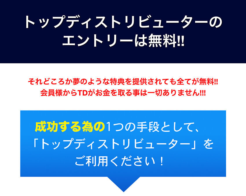 トップディストリビューターにエントリー希望の方は「エントリーする」ボタンからお申し込みください。