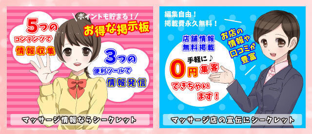国内最大のマッサージ情報掲示板を目指す シークレット