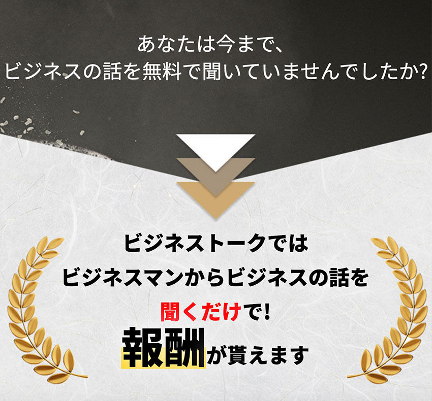あなたは今までビジネスの話を無料で聞いていませんでしたか?ビジネストークではビジネスマンから「ビジネスの話を聞く」(オンラインでも可)だけで報酬が貰えます!