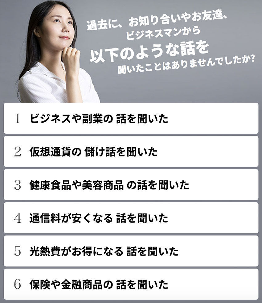 過去に、お知り合いやお友達、ビジネスマンから 以下のような話を聞いたことはありませんでしたか?