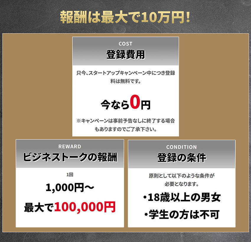 ビジネスマンの話を聞く度に!最大10万円の報酬が何度でも貰える!BUSINESS TALK